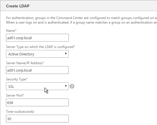 - To support SSL and/or TLS, you need to install the LDAP root certificate on Command Center. Copy the root cert to C:\Program Files (x86)\Citrix\Citrix Command Center\Certs.